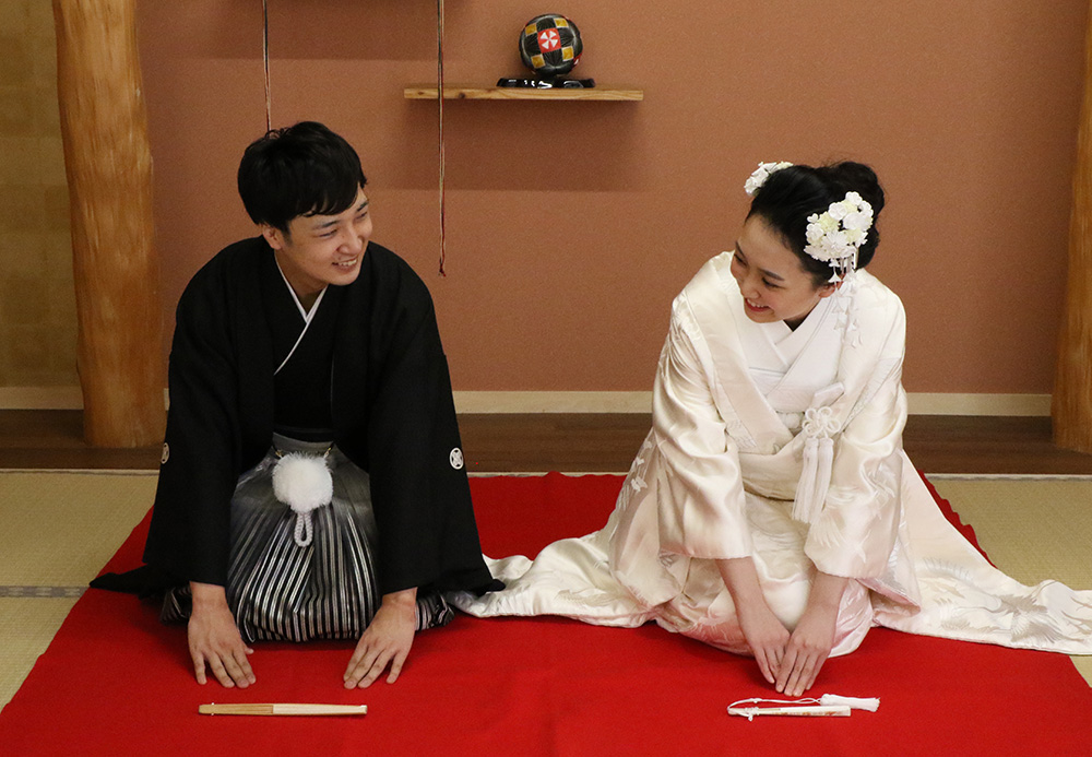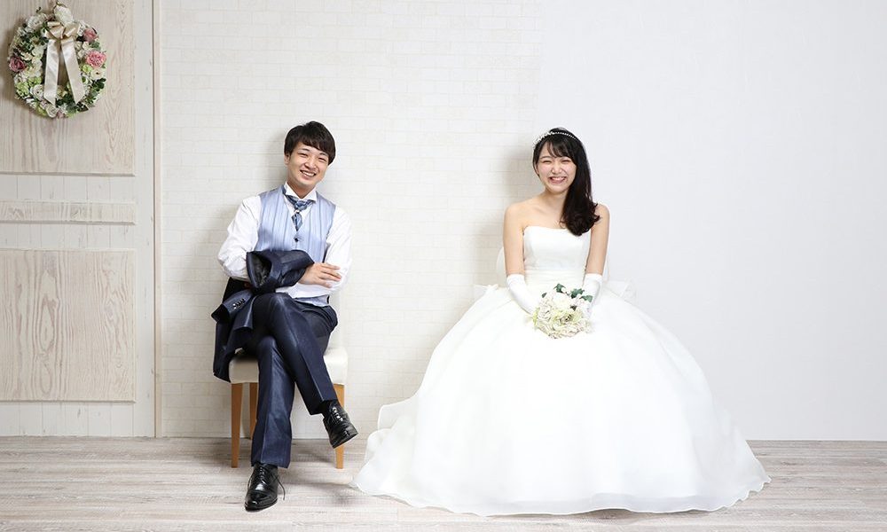 平日 ¥74,800(税込) / 土日祝 ¥85,800(税込)新郎・新婦衣裳各1点・3面台紙付写真・5カットデータ込み・ヘアメイク・着付け